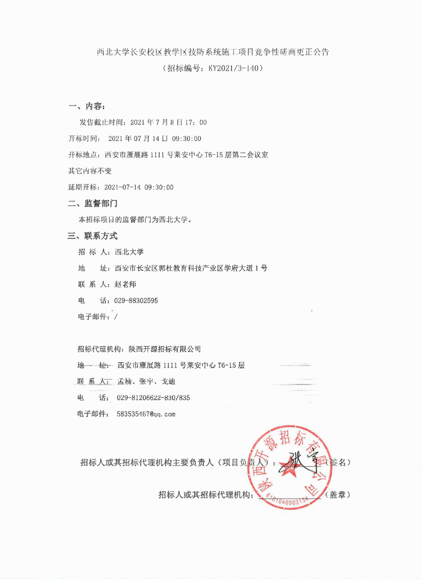 乐动网页版登录入口长安校区教学区技防系统施工项目竞争性磋商更正公告