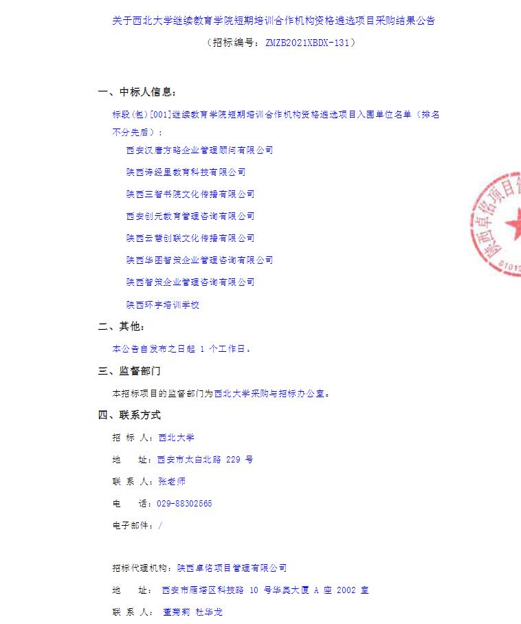 关于乐动网页版登录入口继续教育学院长期培训合作机构资格遴选项目采购结果公告