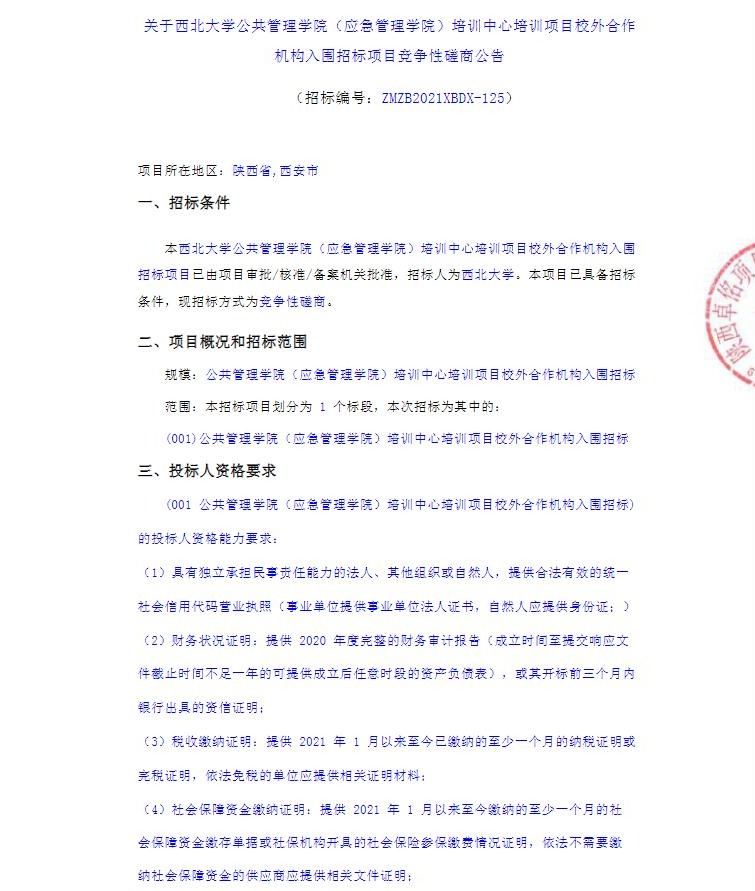 关于乐动网页版登录入口公共管理学院(应急管理学院)培训中心培训项目校外合作机构入围招标项目竞争性磋商公告
