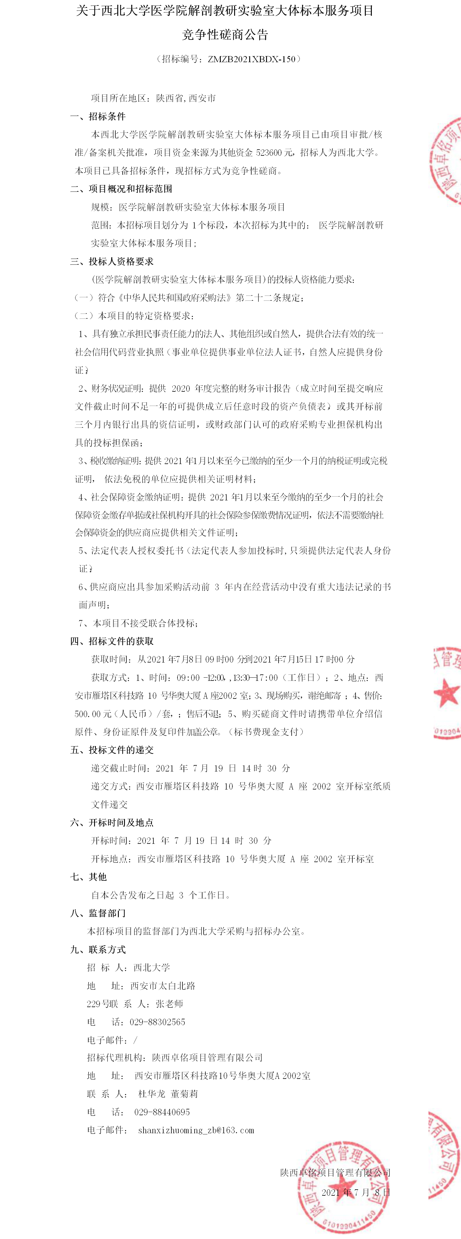 关于乐动网页版登录入口医学院解剖教研实验室大体标本服务项目竞争性磋商公告