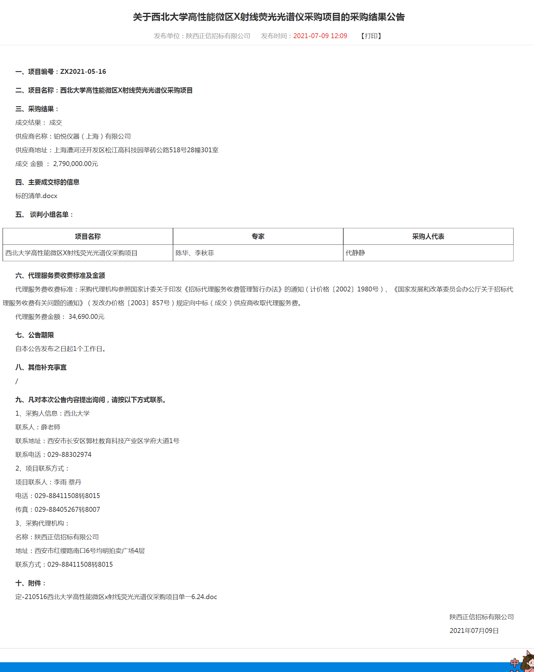 关于乐动网页版登录入口高性能微区X射线荧光光谱仪采购项目的采购结果公告
