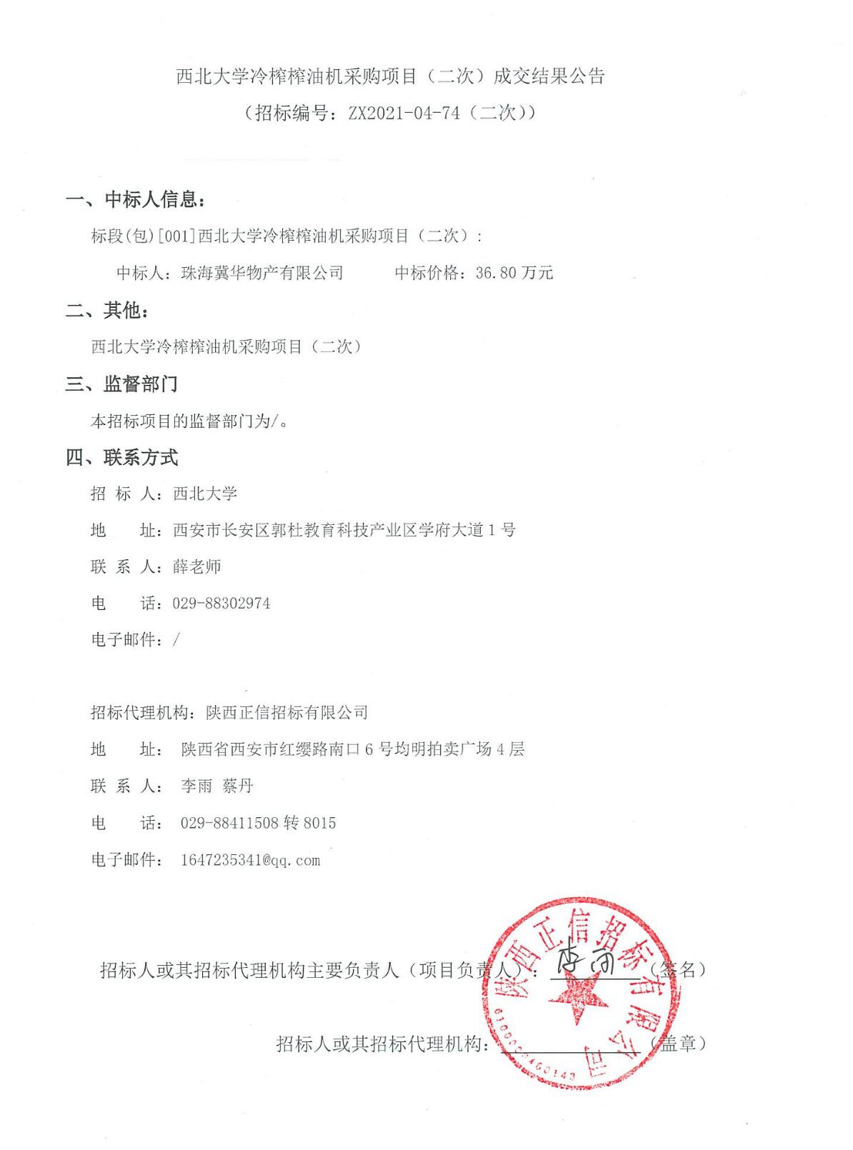 乐动网页版登录入口冷榨榨油机采购项目(二次)成交结果公告