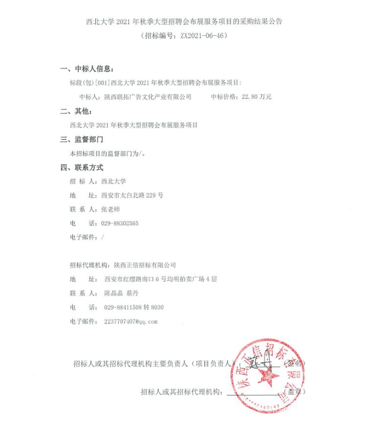 关于乐动网页版登录入口2021年秋季大型招聘会布展服务项目的采购结果公告