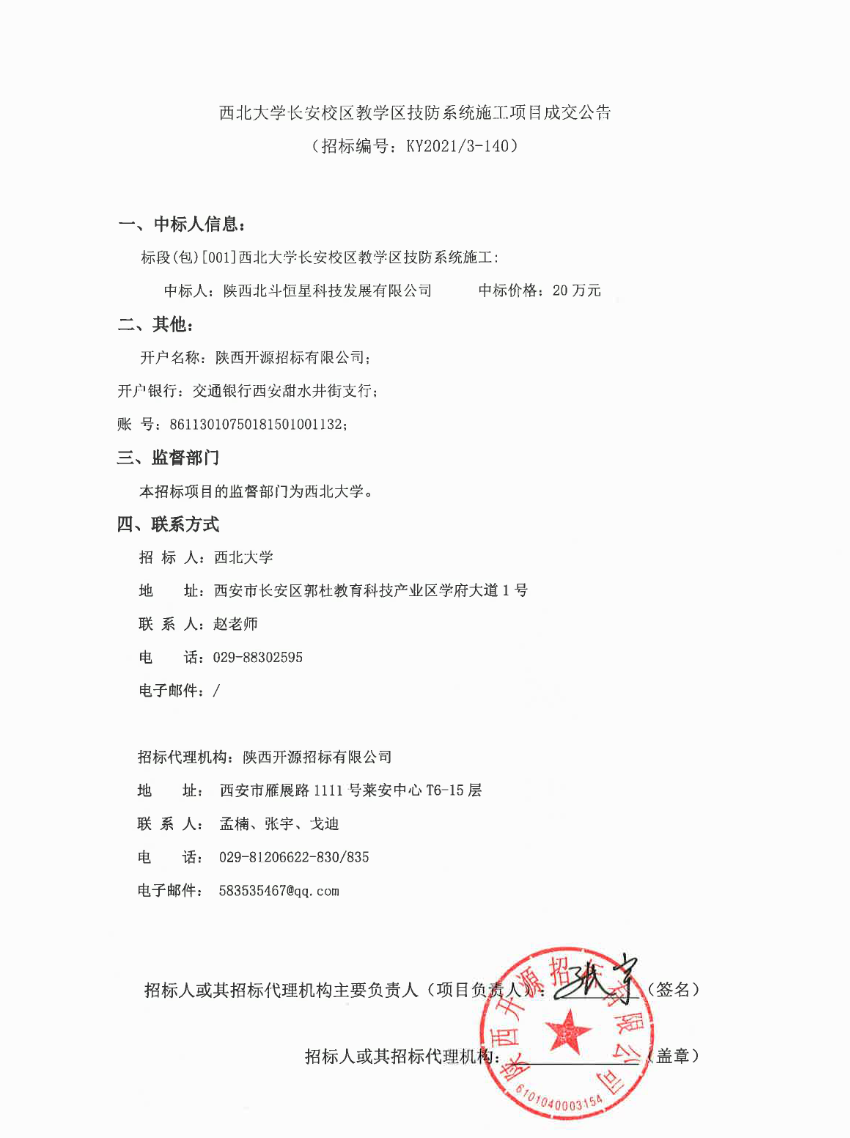 乐动网页版登录入口长安校区教学区技防系统施工项目成交公告