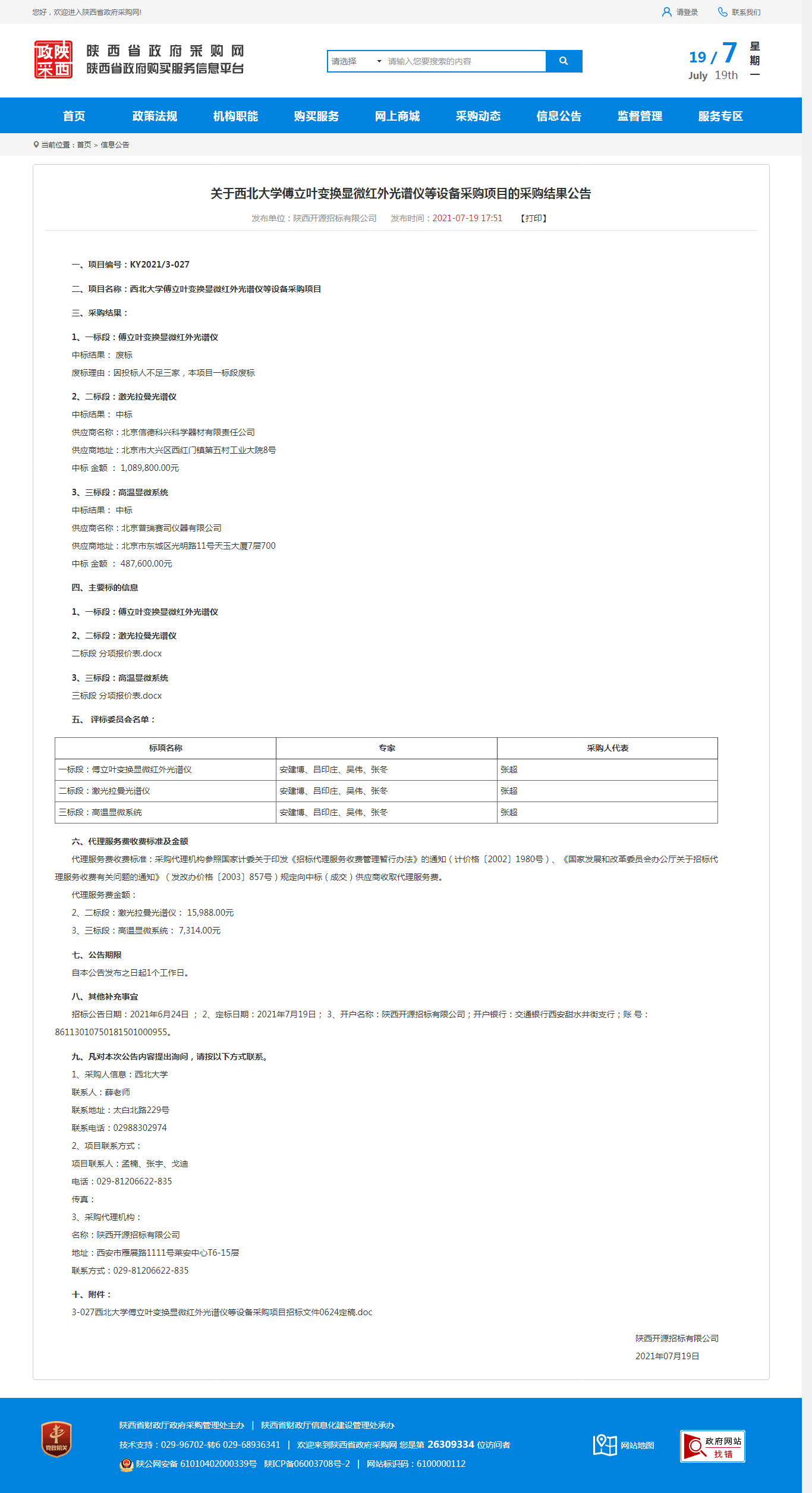 关于乐动网页版登录入口傅立叶变换显微红外光谱仪等设备采购项目的采购结果公告 作者: 编辑:采购与招标办公室 时间:2021-07-19 原公告地址:http://www.ccgp-shaanxi.gov.cn/notice/noticeDetail.do?noticeguid=8a85be337a79620e017abdb0b9d25220