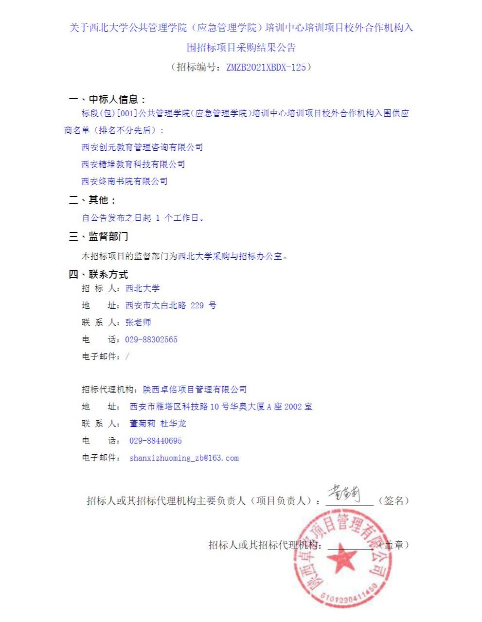 关于乐动网页版登录入口公共管理学院(应急管理学院)培训中心培训项目校外合作机构入围招标项目采购结果公告