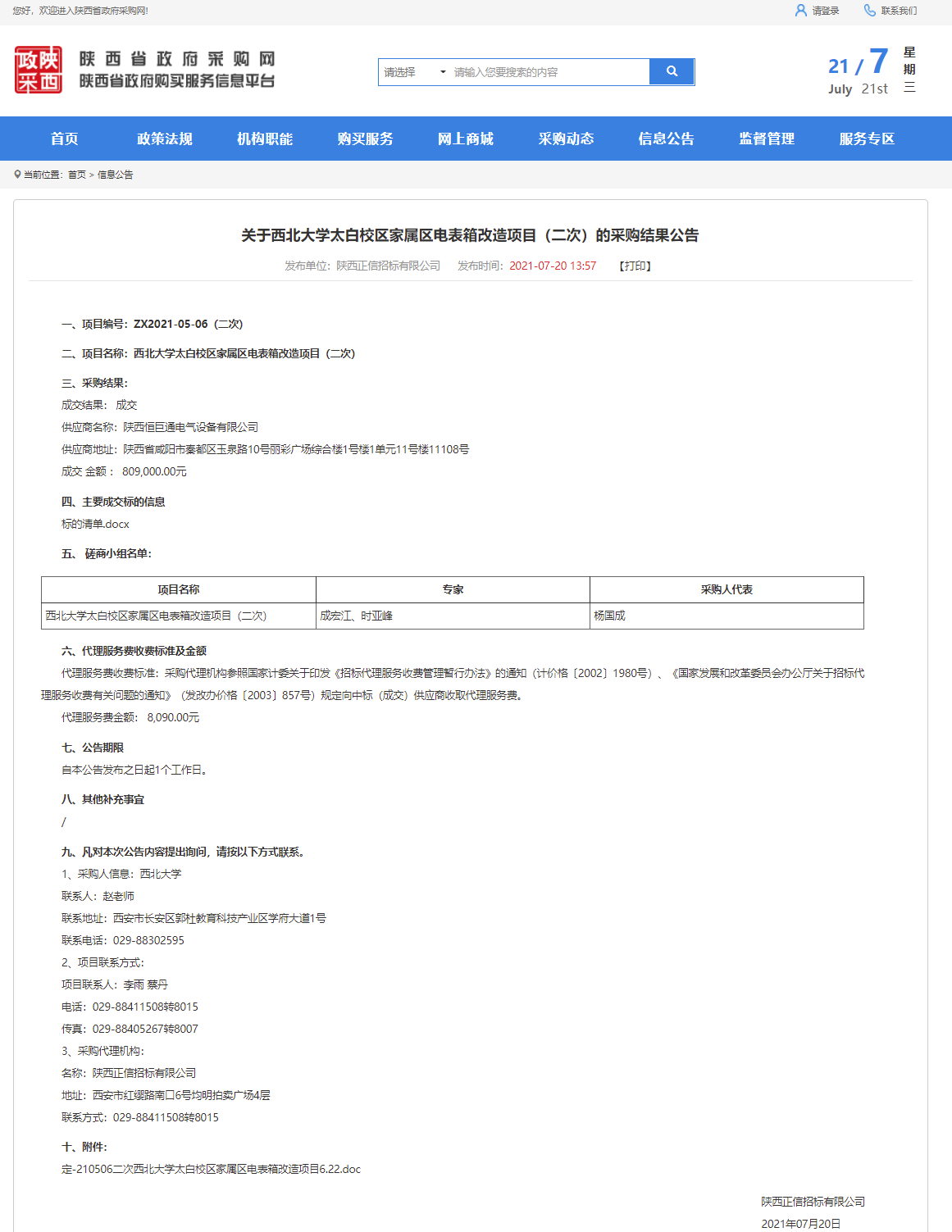 关于乐动网页版登录入口太白校区家属区电表箱改造项目(二次)的采购结果公告