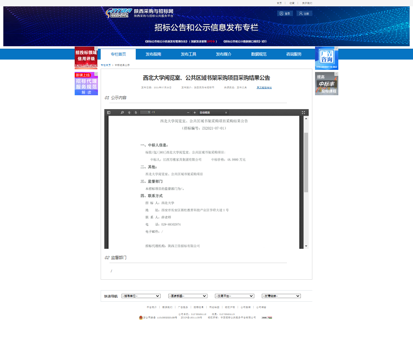 乐动网页版登录入口阅览室、公共区域书架采购项目采购结果公告 作者: 编辑:采购与招标办公室 时间:2021-07-26 原公告地址:http://bulletin.sntba.com/resultBulletin/2021-07-26/323301.html