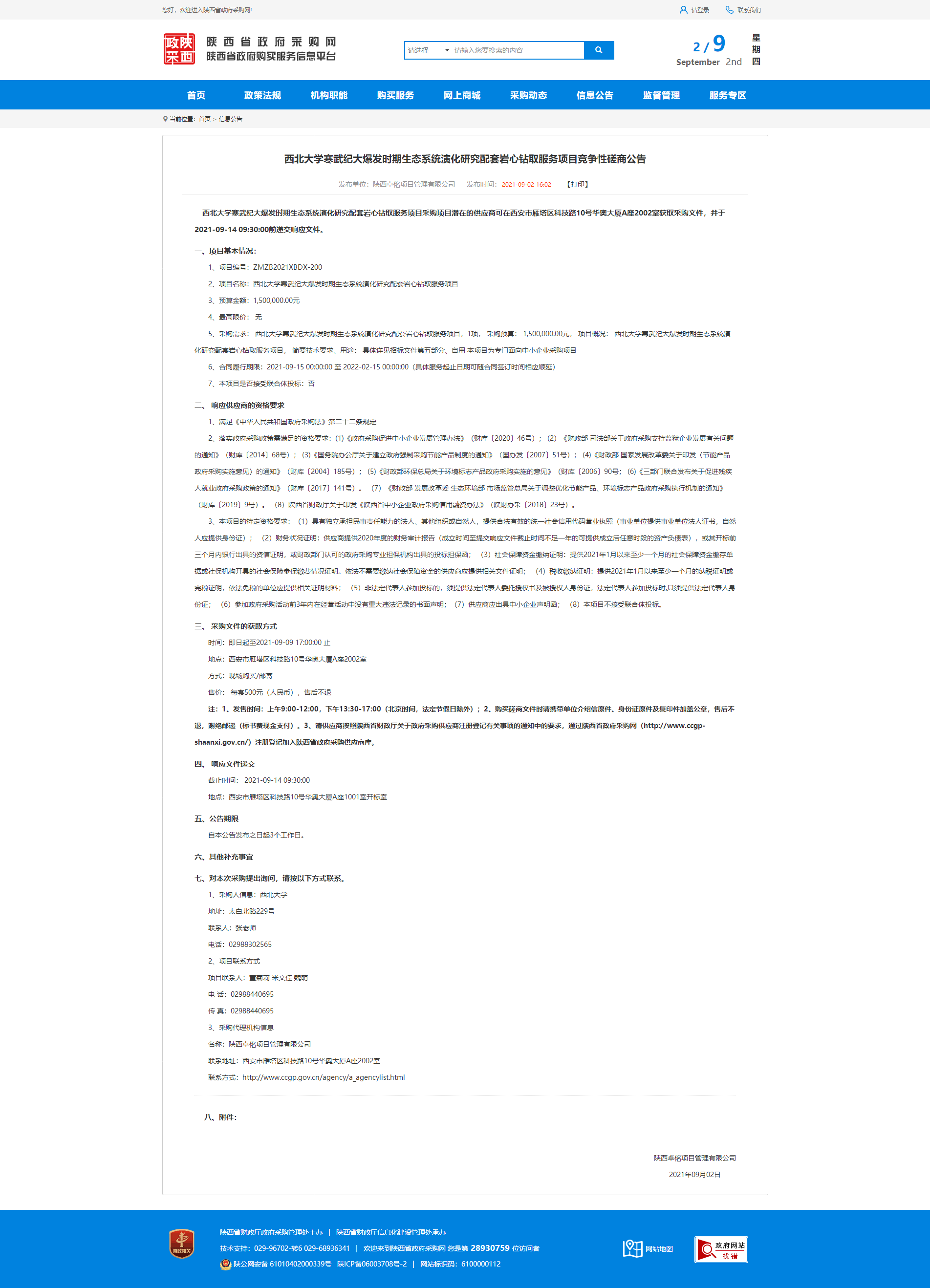 乐动网页版登录入口寒武纪大爆发时期生态系统演化研究配套岩心钻取服务项目竞争性磋商公告