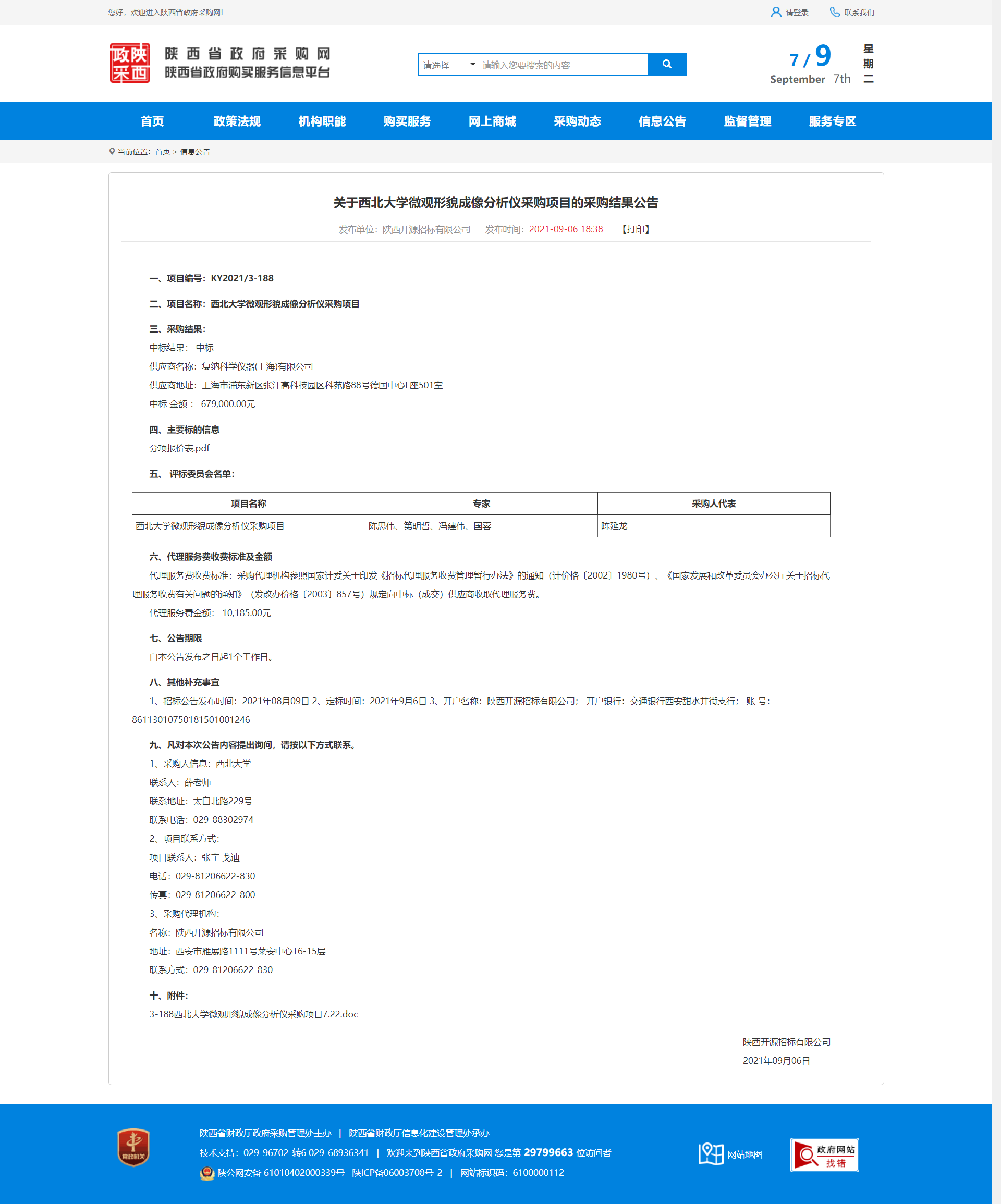 关于乐动网页版登录入口微观形貌成像分析仪采购项目的采购结果公告 作者: 编辑:采购与招标办公室 时间:2021-09-07 原公告地址:http://www.ccgp-shaanxi.gov.cn/notice/noticeDetail.do?noticeguid=8a85be347b04610d017bbaac92114f2e