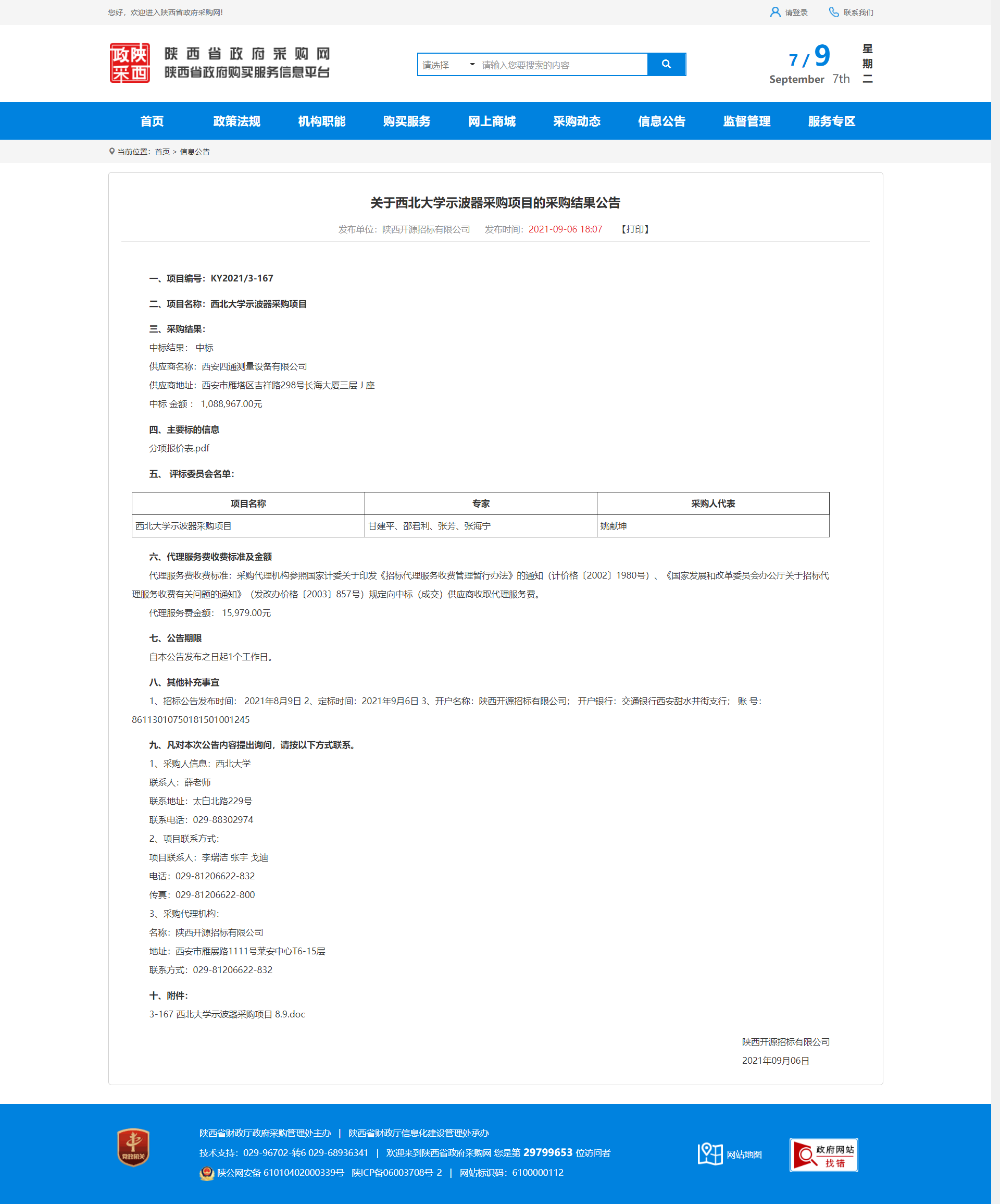 关于乐动网页版登录入口示波器采购项目的采购结果公告 作者: 编辑:采购与招标办公室 时间:2021-09-07 原公告地址:http://www.ccgp-shaanxi.gov.cn/notice/noticeDetail.do?noticeguid=8a85be347b04610d017bba92520e4e63