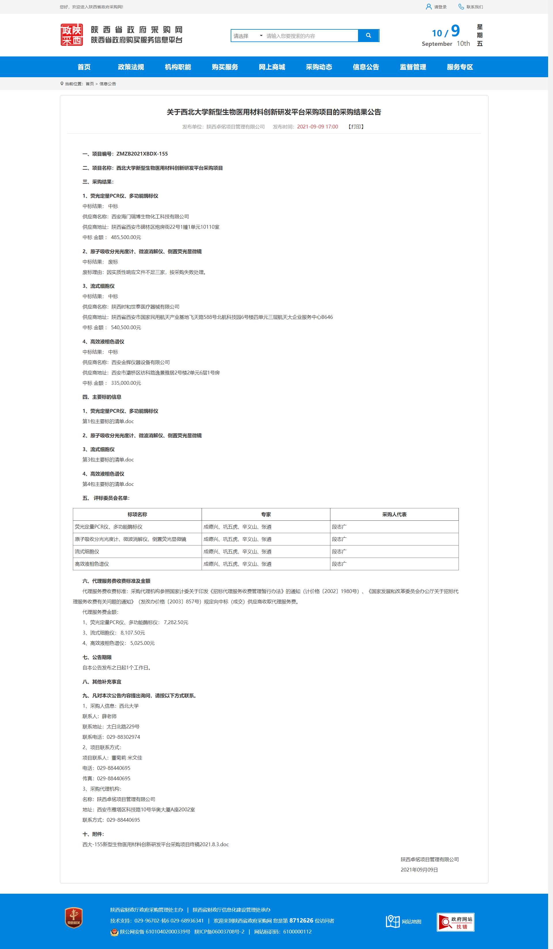 关于乐动网页版登录入口新型生物医用材料创新研发平台采购项目的采购结果公告 作者: 编辑:采购与招标办公室 时间:2021-09-10 原公告地址:http://www.ccgp-shaanxi.gov.cn/notice/noticeDetail.do?noticeguid=8a85be347bc00296017bc9c746595f00