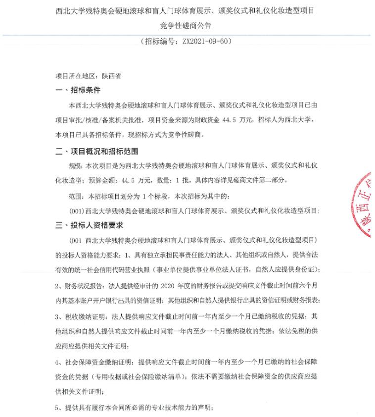 乐动网页版登录入口残特奥会硬地滚球和盲人门球体育展示、颁奖仪式和礼仪化妆造型项目竞争性磋商公告