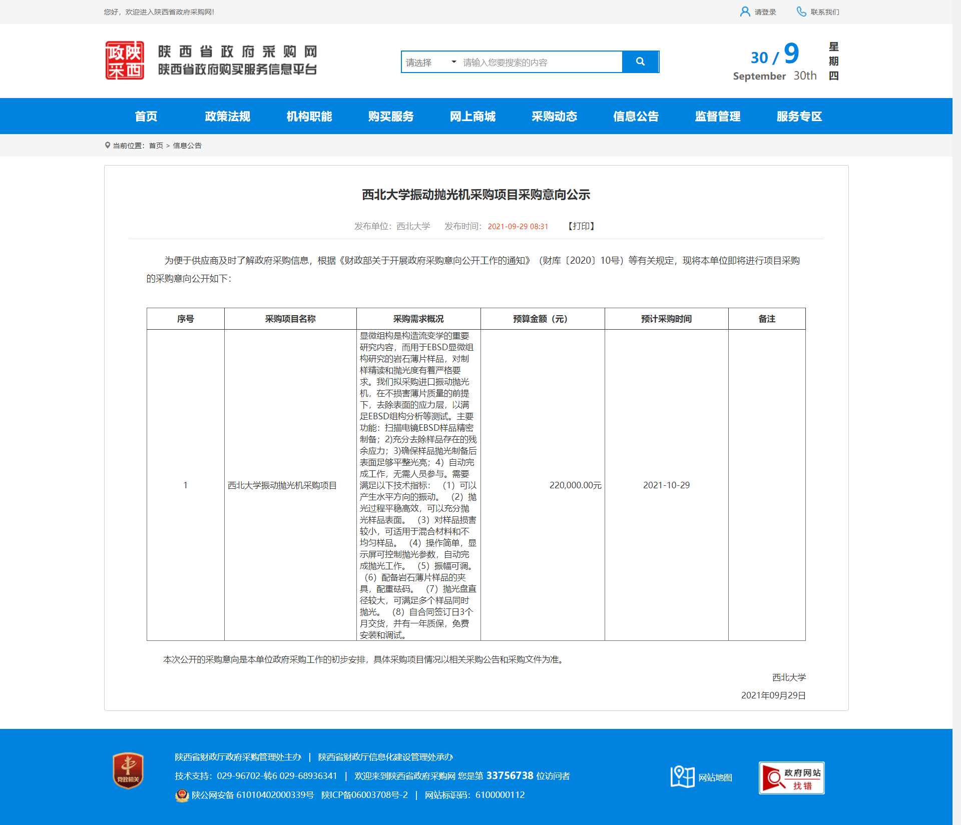 乐动网页版登录入口振动抛光机采购项目采购意向公示 作者: 编辑:采购与招标办公室 时间:2021-09-30 原公告地址:http://www.ccgp-shaanxi.gov.cn/notice/noticeDetail.do?noticeguid=8a85be337c20d0b4017c2ef28a5109d6