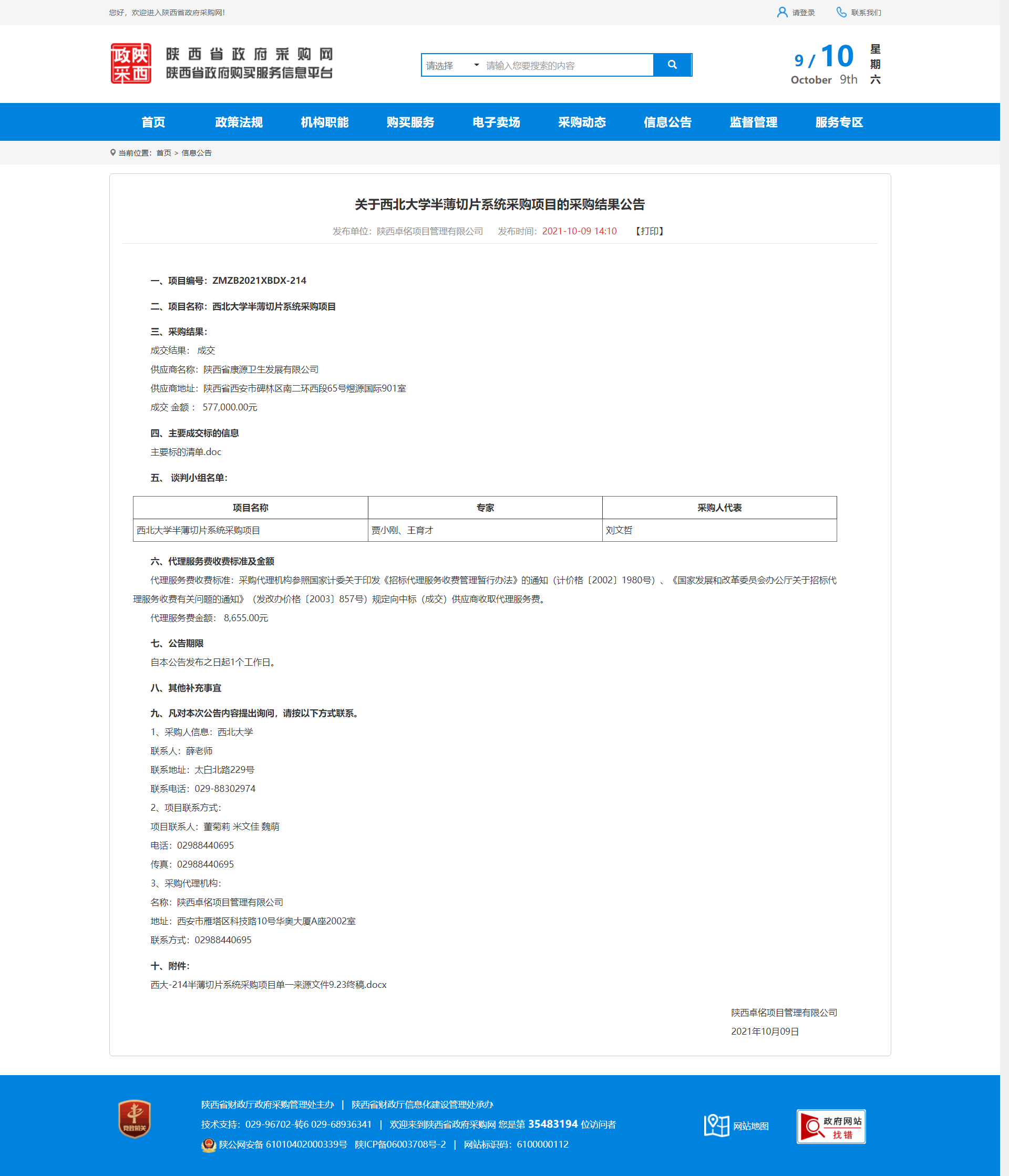关于乐动网页版登录入口半薄切片系统采购项目的采购结果公告 作者: 编辑:采购与招标办公室 时间:2021-10-09 原公告地址:http://www.ccgp-shaanxi.gov.cn/notice/noticeDetail.do?noticeguid=8a85be337c20d0b4017c63ab46ca5540