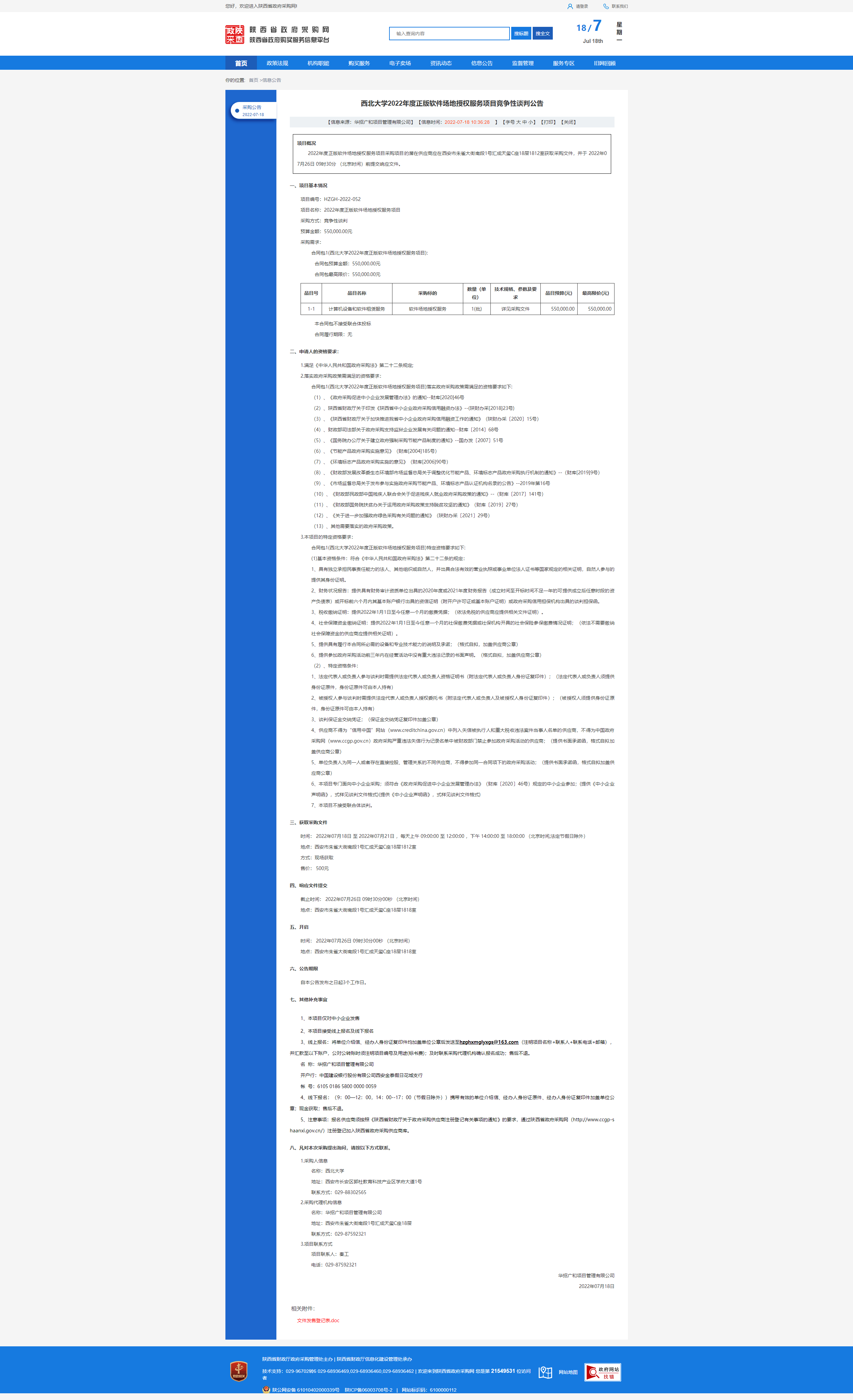 乐动网页版登录入口2022年度正版软件场地授权服务项目竞争性谈判公告