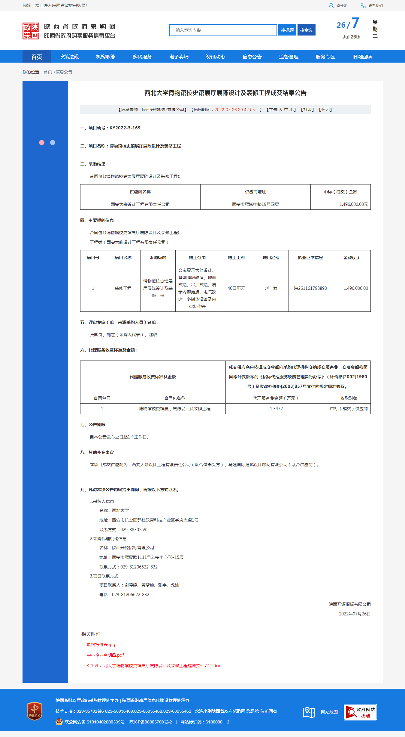 乐动网页版登录入口博物馆校史馆展厅展陈设计及装修工程成交结果公告