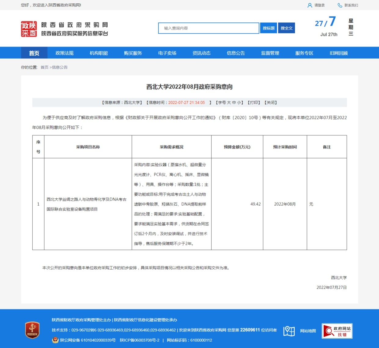 乐动网页版登录入口2022年08月政府采购意向 作者: 编辑:采购与招标办公室 时间:2022-07-27 原公告链接:http://www.ccgp-shaanxi.gov.cn/freecms/site/shaanxi/ggxx/info/2022/8a69c983823e8d3701823fa8fcc44fa0.html?noticeType=59¬iceId=2deaf510-0db1-11ed-9a8e-08c0eb20c666