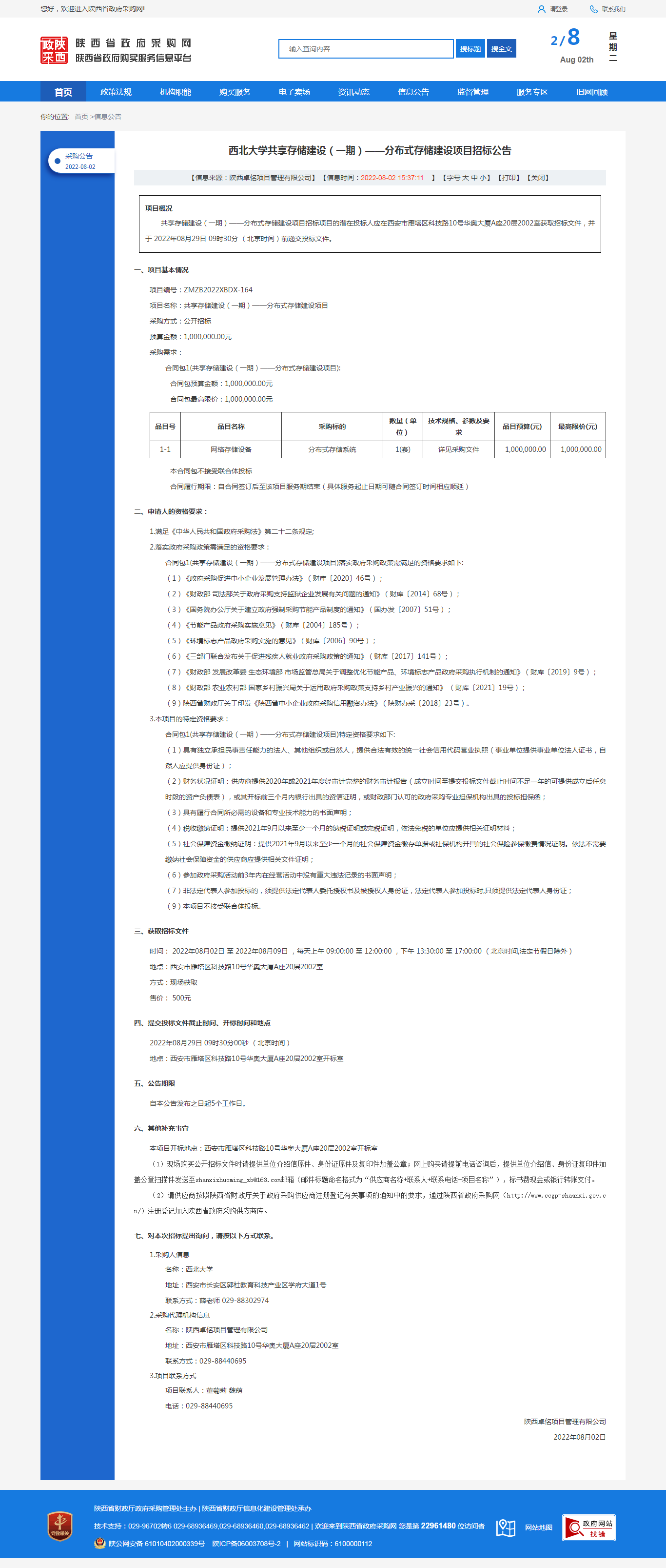 乐动网页版登录入口共享存储建设(一期)——分布式存储建设项目招标公告 作者: 编辑:采购与招标办公室 时间:2022-08-02 原公告链接:http://www.ccgp-shaanxi.gov.cn/freecms/site/shaanxi/ggxx/info/2022/8a69c8308238f00301825cf936ec1904.html?noticeType=001011¬iceId=565bf0b7-1236-11ed-9a8e-08c0eb20c666