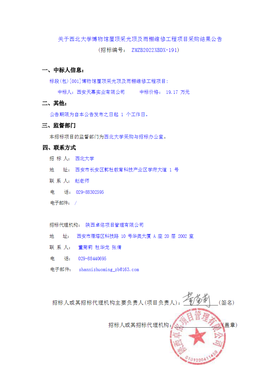 关于乐动网页版登录入口博物馆屋顶采光顶及雨棚维修工程项目采购结果公告