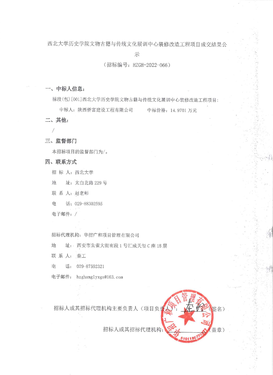 乐动网页版登录入口历史学院文物古籍与传统文化展训中心装修改造工程项目成交结果公示