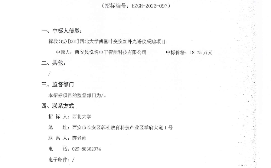 乐动网页版登录入口傅里叶变换红外光谱仪采购项目中标结果公示 作者: 编辑:采购与招标办公室 时间:2022-11-23 原公告链接:http://bulletin.sntba.com/resultBulletin/2022-11-23/502120.html