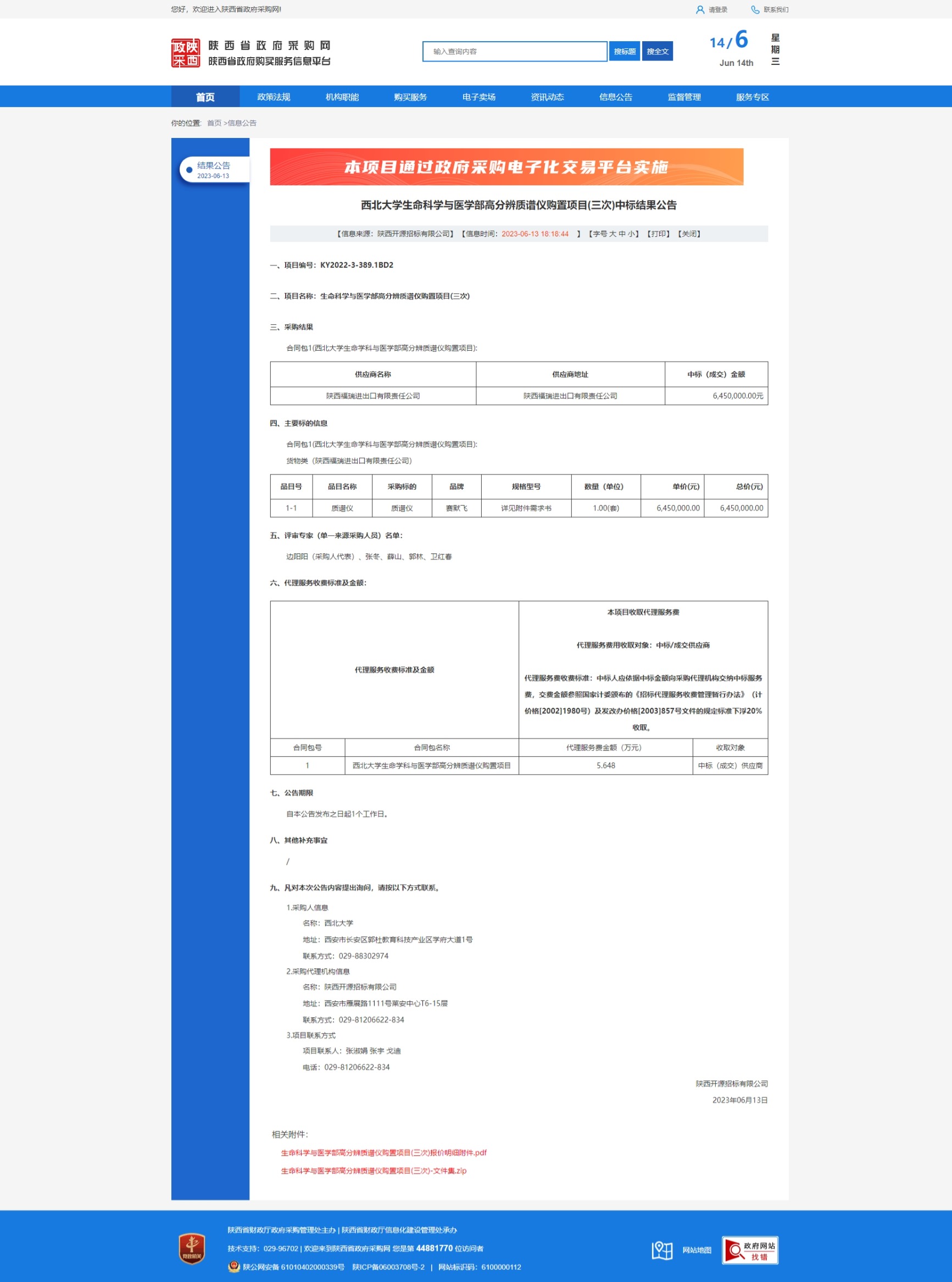 乐动网页版登录入口生命科学与医学部高分辨质谱仪购置项目(三次)中标结果公告 作者: 编辑:采购与招标办公室 时间:2023-06-14 原公告链接:http://www.ccgp-shaanxi.gov.cn/freecms/site/shaanxi/ggxx/info/2023/8a69c931884486120188b42f90a63f97.html?noticeType=001025¬iceId=bce12c69-09d4-11ee-9a8e-08c0eb20c666