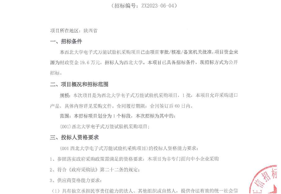 乐动网页版登录入口电子式万能试验机采购项目招标公告 作者: 编辑:采购与招标办公室 时间:2023-06-16 原公告链接:http://bulletin.sntba.com/biddingBulletin/2023-06-16/573127.html
