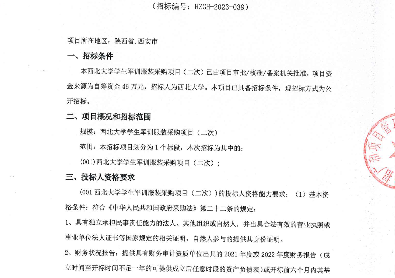 乐动网页版登录入口学生军训服装采购项目(二次)竞争性磋商公告 作者: 编辑:采购与招标办公室 时间:2023-08-01 原公告链接:http://bulletin.sntba.com/biddingBulletin/2023-08-01/599548.html