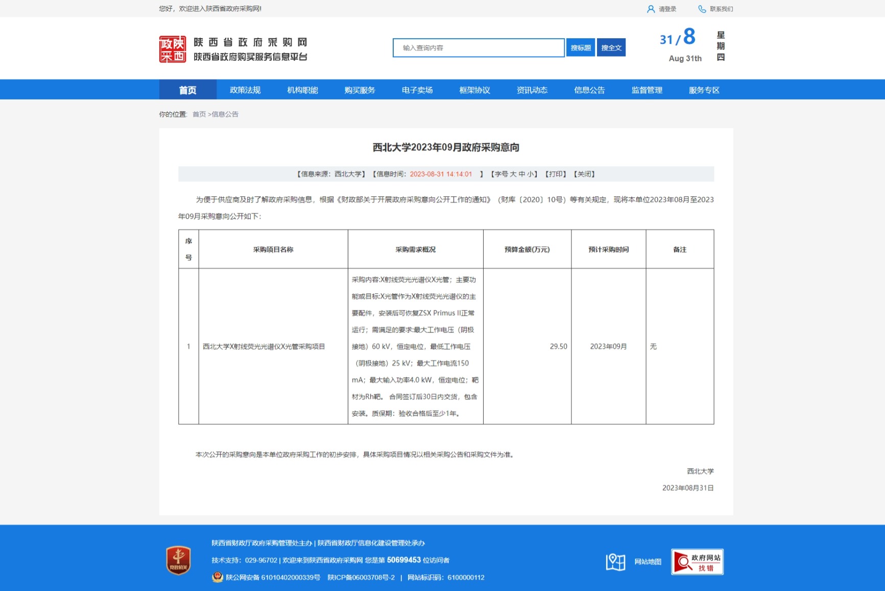 乐动网页版登录入口2023年09月政府采购意向 作者: 编辑: 时间:2023-08-31 原公告链接:http://www.ccgp-shaanxi.gov.cn/freecms/site/shaanxi/ggxx/info/2023/8a69c1f48a442b3e018a445d305713ea.html?noticeType=59¬iceId=c7afb278-47c6-11ee-9a8e-08c0eb20c666