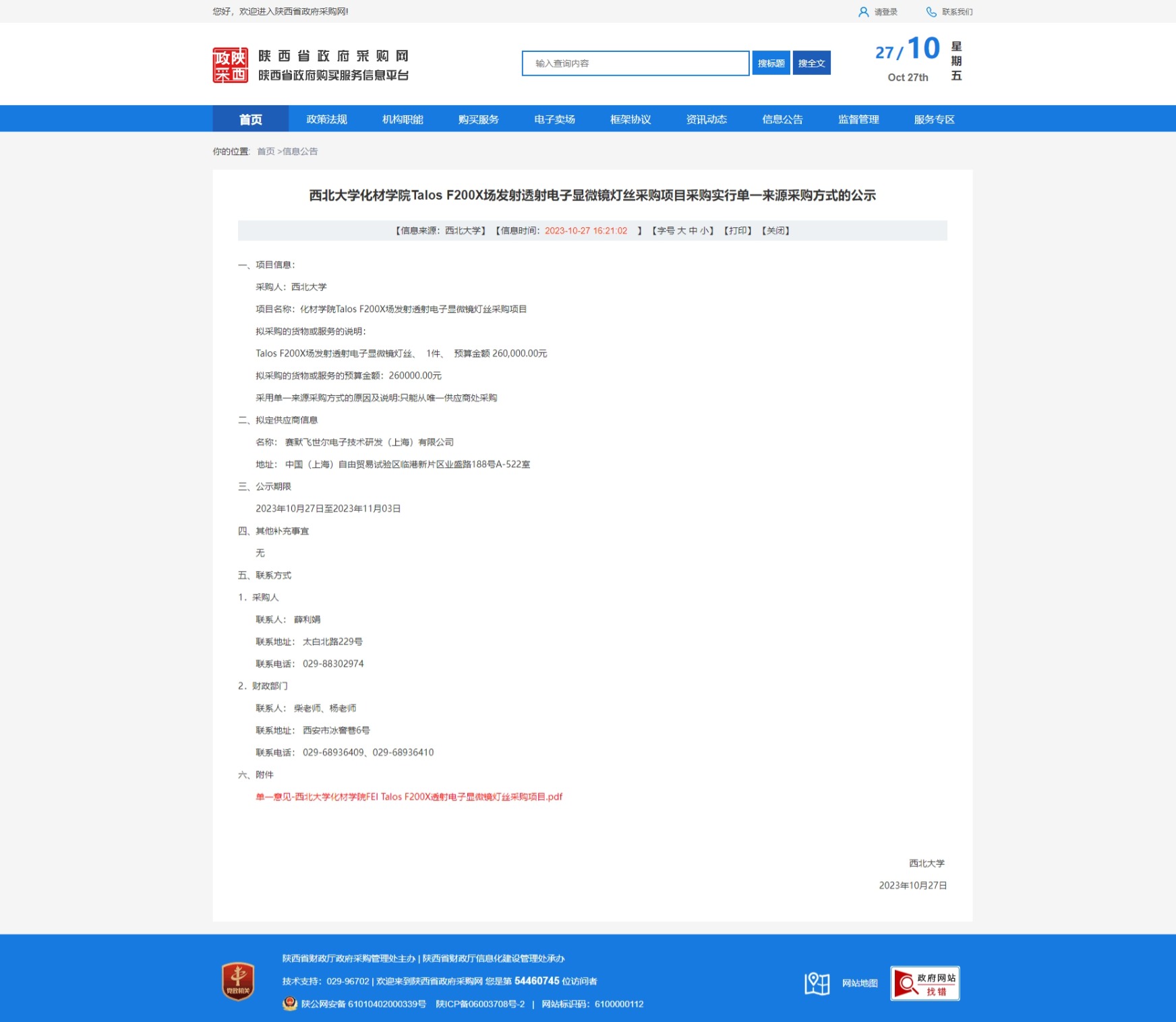 乐动网页版登录入口化材学院Talos F200X场发射透射电子显微镜灯丝采购项目采购实行单一来源采购方式的公示 作者: 编辑:采购与招标办公室 时间:2023-10-27 原公告链接:http://www.ccgp-shaanxi.gov.cn/freecms/site/shaanxi/ggxx/info/2023/8a69c1288b6f04ea018b7035835c48ea.html?noticeType=001051¬iceId=11c24886-74a3-11ee-9a8e-08c0eb20c666