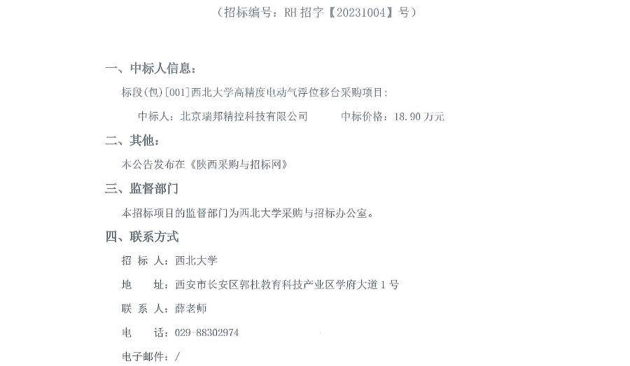 乐动网页版登录入口高精度电动气浮位移台采购项目成交结果公告 作者: 编辑: 时间:2023-10-31 原公告链接:http://bulletin.sntba.com/resultBulletin/2023-10-31/770888.html