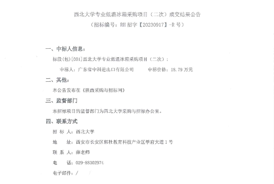 乐动网页版登录入口专业低温冰箱采购项目(二次)成交结果公告 作者: 编辑: 时间:2023-11-09 原公告链接:http://bulletin.sntba.com/resultBulletin/2023-11-07/790256.html