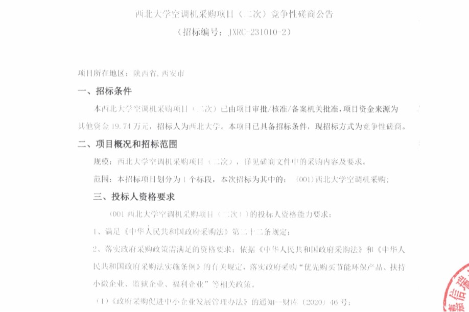乐动网页版登录入口空调机采购项目(二次)竞争性磋商公告