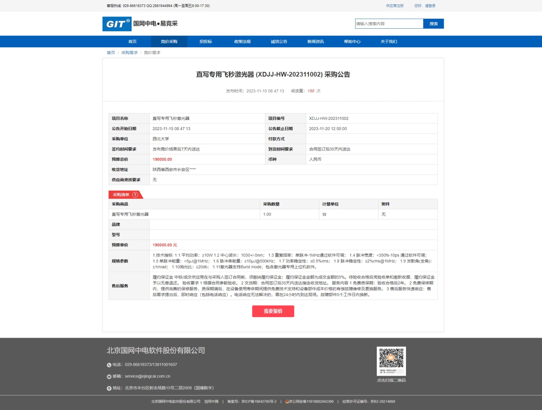 乐动网页版登录入口直写专用飞秒激光器采购公告 作者: 编辑:采购与招标办公室 时间:2023-11-15 原公告链接:https://www.ejingcai.com.cn/site/bidding/detail/6692