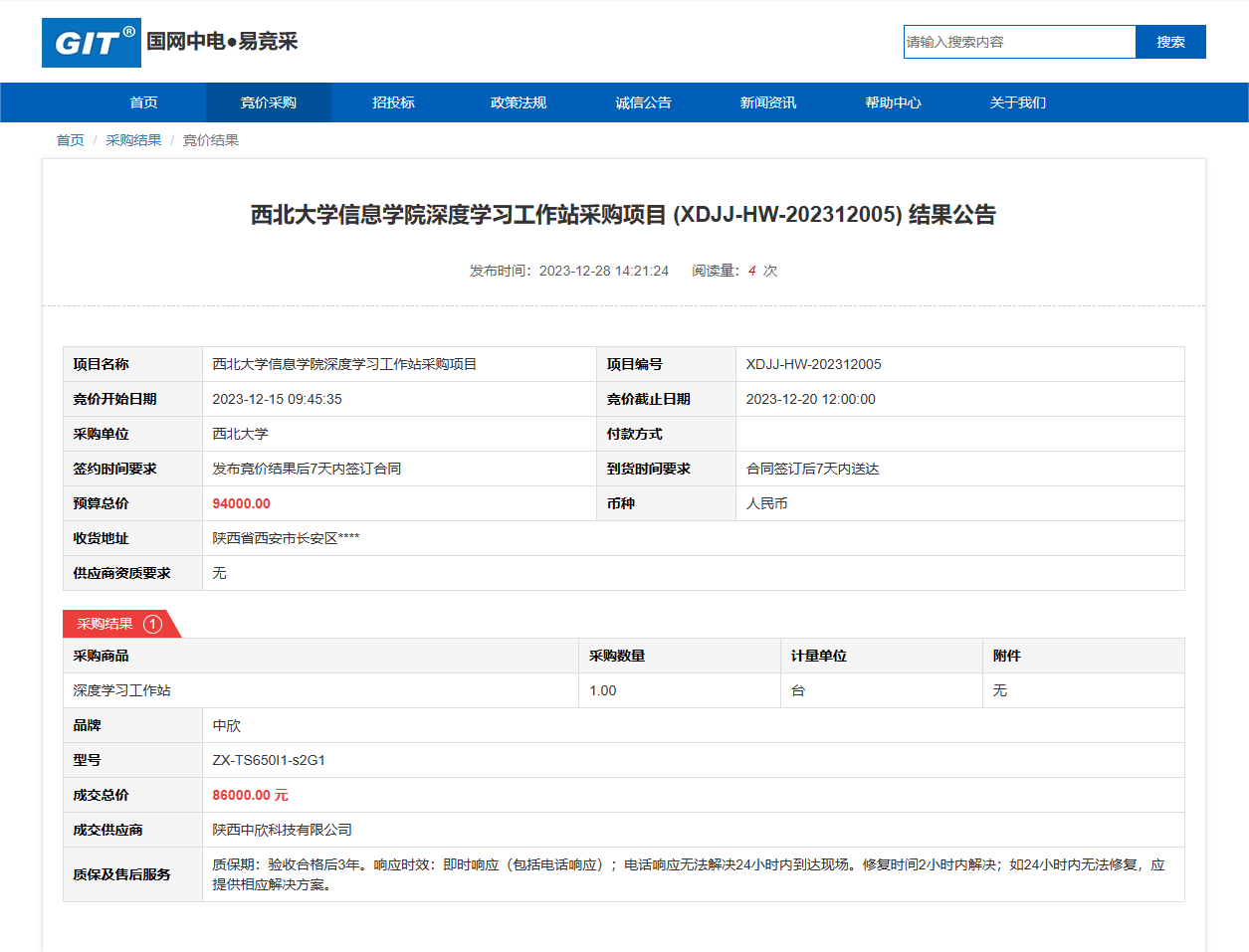 乐动网页版登录入口信息学院深度学习工作站采购项目 (XDJJ-HW-202312005) 竞价结果公告 作者: 编辑:采购与招标办公室 时间:2023-12-28 原公告链接:https://www.ejingcai.com.cn/site/bidding/detail/8075