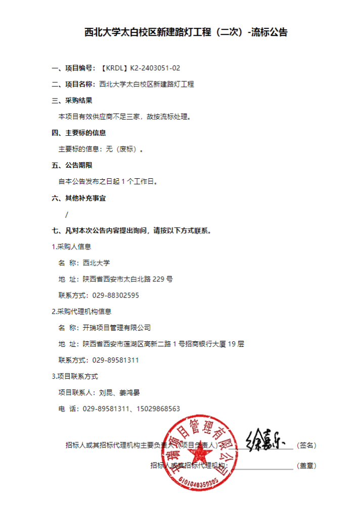 乐动网页版登录入口太白校区新建路灯工程(二次)-流标公告