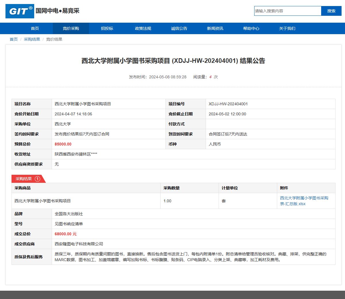 乐动网页版登录入口附属小学图书采购项目 (XDJJ-HW-202404001) 竞价结果公告 作者: 编辑: 时间:2024-05-08 原公告链接:https://www.ejingcai.com.cn/site/bidding/detail/10017
