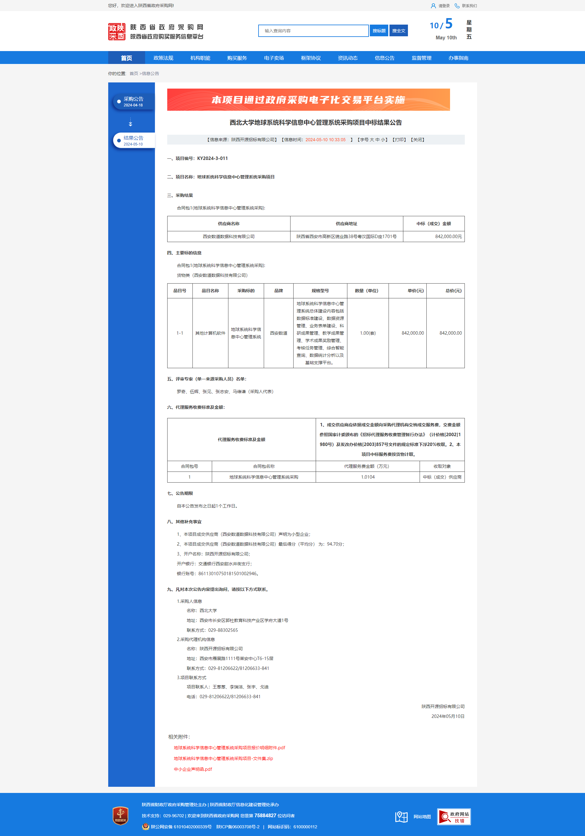 乐动网页版登录入口地球系统科学信息中心管理系统采购项目中标结果公告