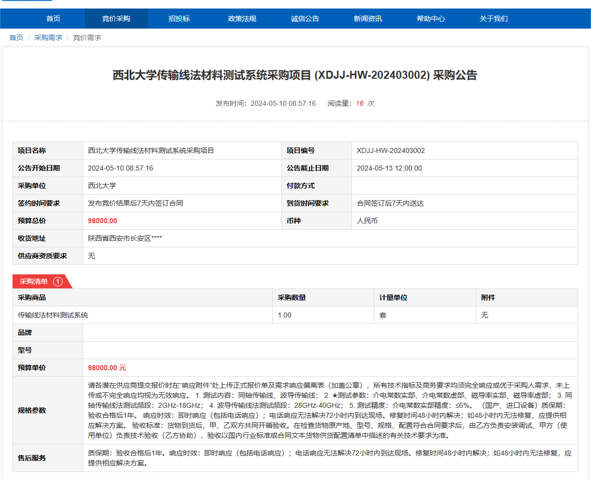 乐动网页版登录入口传输线法材料测试系统采购项目 (XDJJ-HW-202403002) 竞价采购公告 作者: 编辑: 时间:2024-05-10 原公告链接:https://www.ejingcai.com.cn/site/bidding/detail/10045