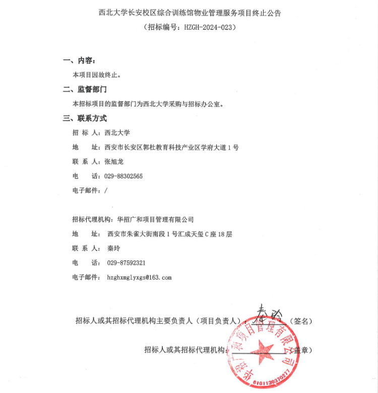 乐动网页版登录入口长安校区综合训练馆物业管理服务项目终止公告