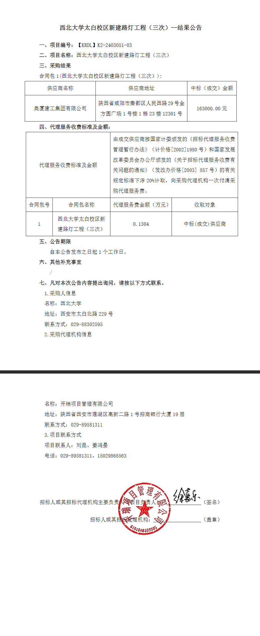 乐动网页版登录入口太白校区新建路灯工程(三次)结果公告