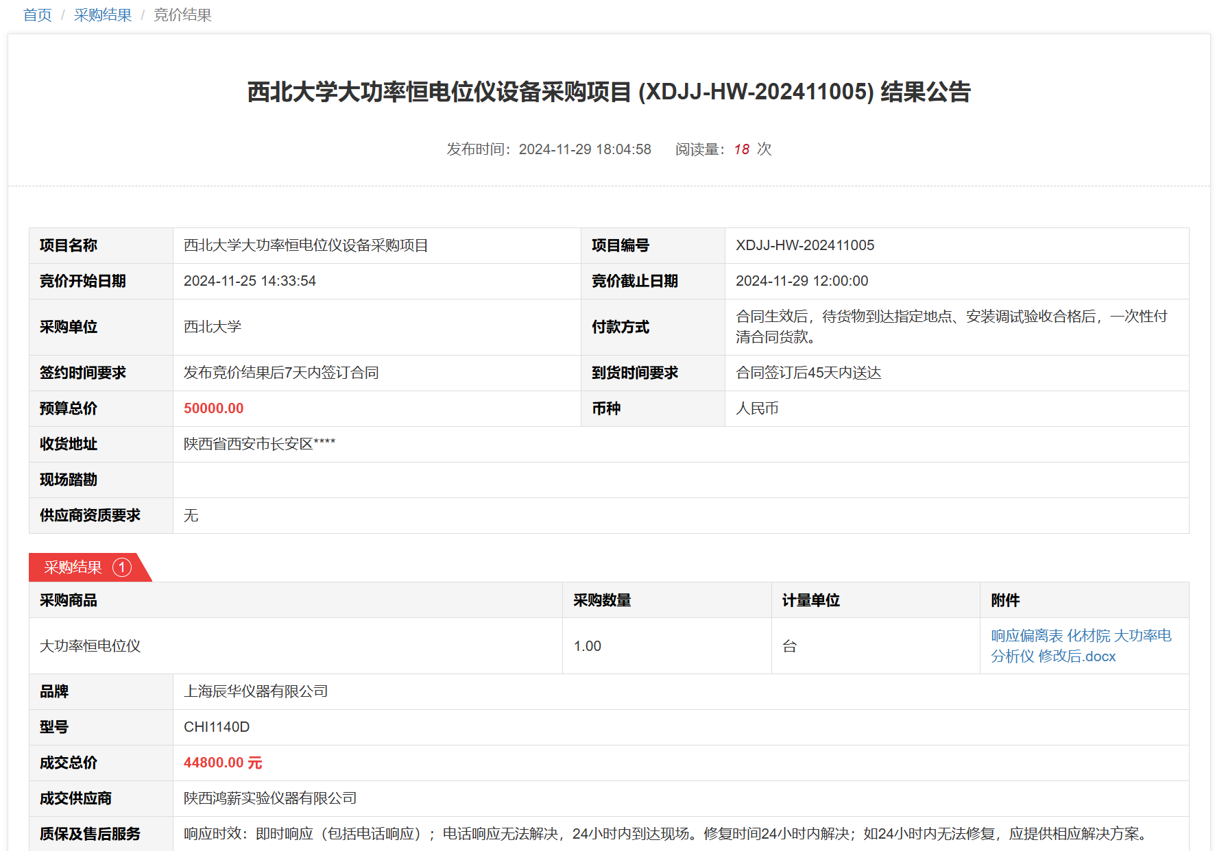 乐动网页版登录入口大功率恒电位仪设备采购项目(XDJJ-HW-202411005)竞价结果公告 作者:采购与招标办公室 编辑: 时间:2024-11-29 原公告链接:https://www.ejingcai.com.cn/site/bidding/detail/15509