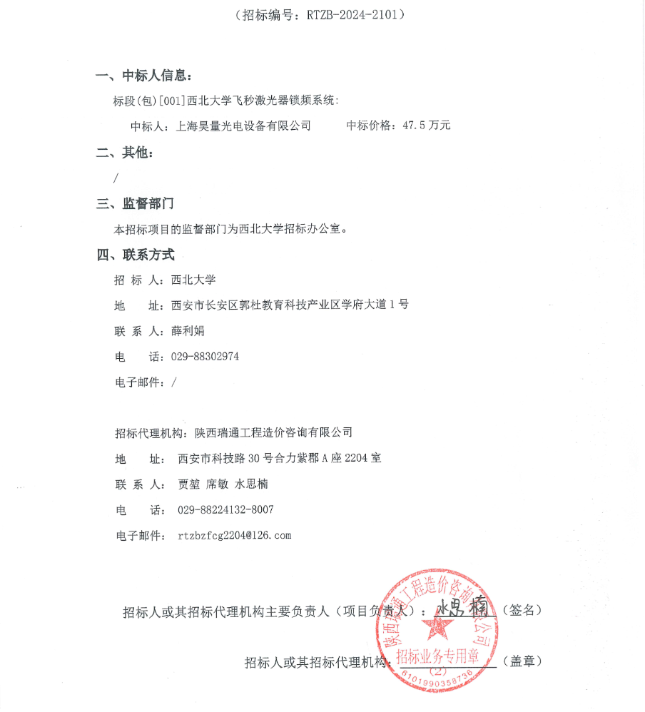 乐动网页版登录入口飞秒激光器锁频系统采购项目结果公告 作者: 编辑:薛利娟 时间:2024-12-02 原公告链接:http://bulletin.sntba.com/resultBulletin/2024-12-02/1991782.html