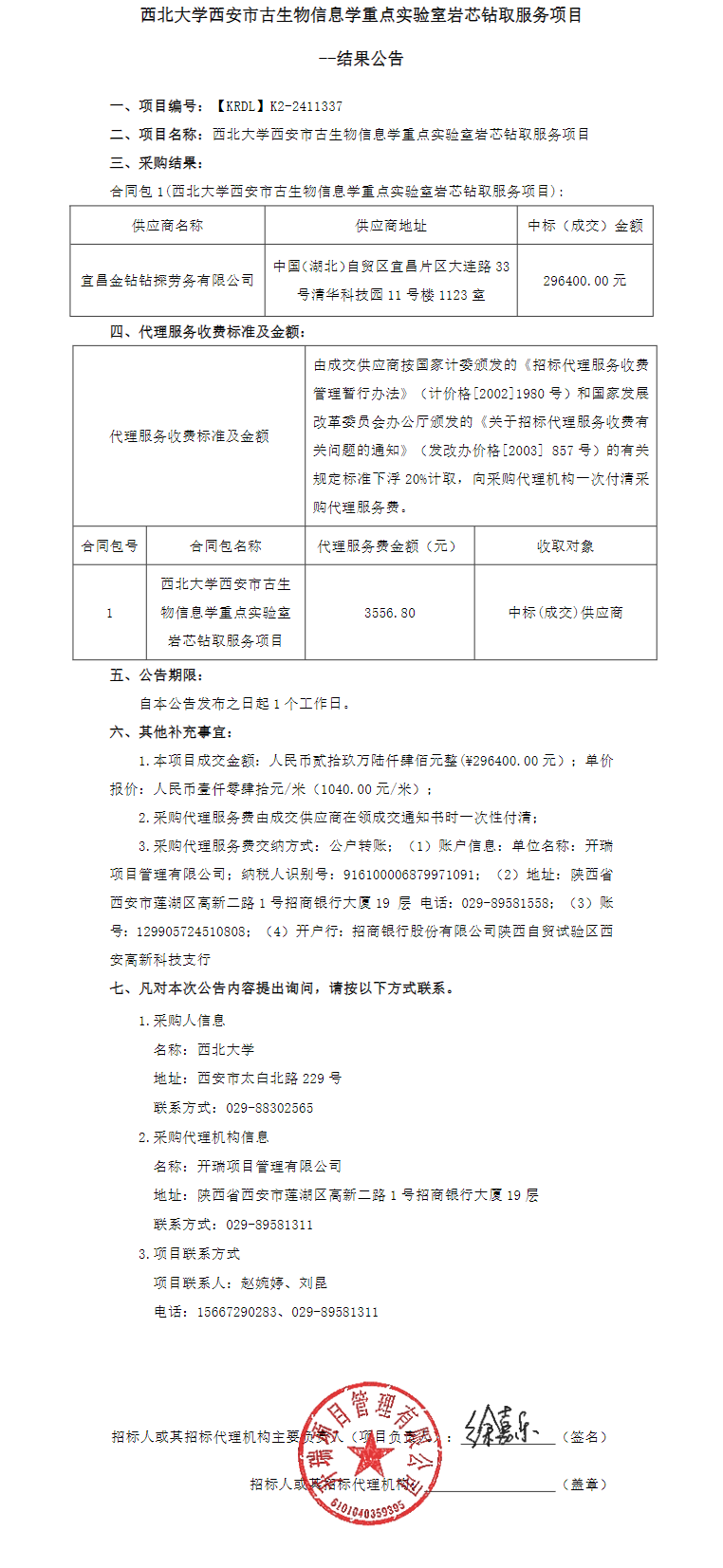 乐动网页版登录入口西安市古生物信息学重点实验室岩芯钻取服务项目结果公告