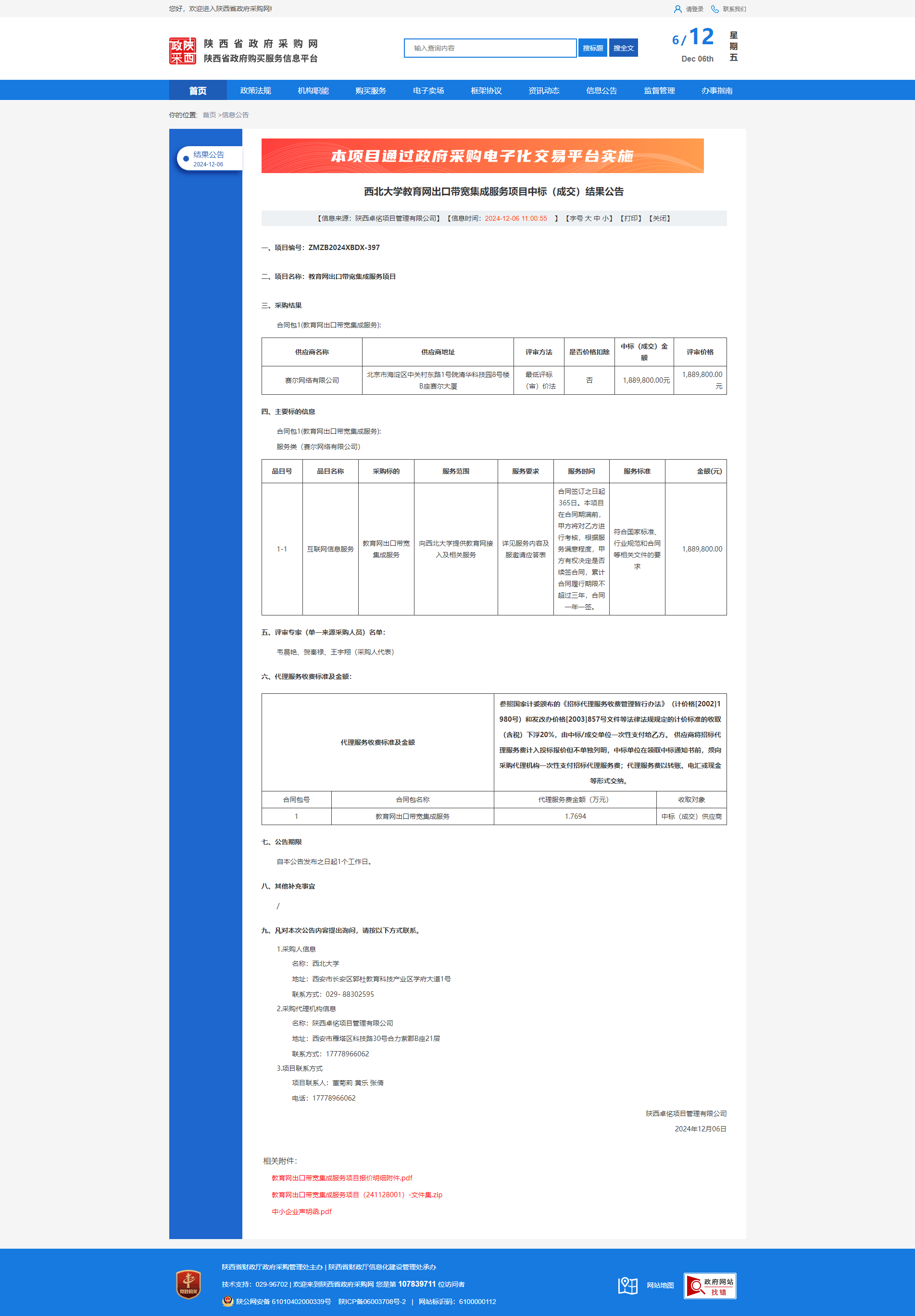 乐动网页版登录入口教育网出口带宽集成服务项目中标(成交)结果公告