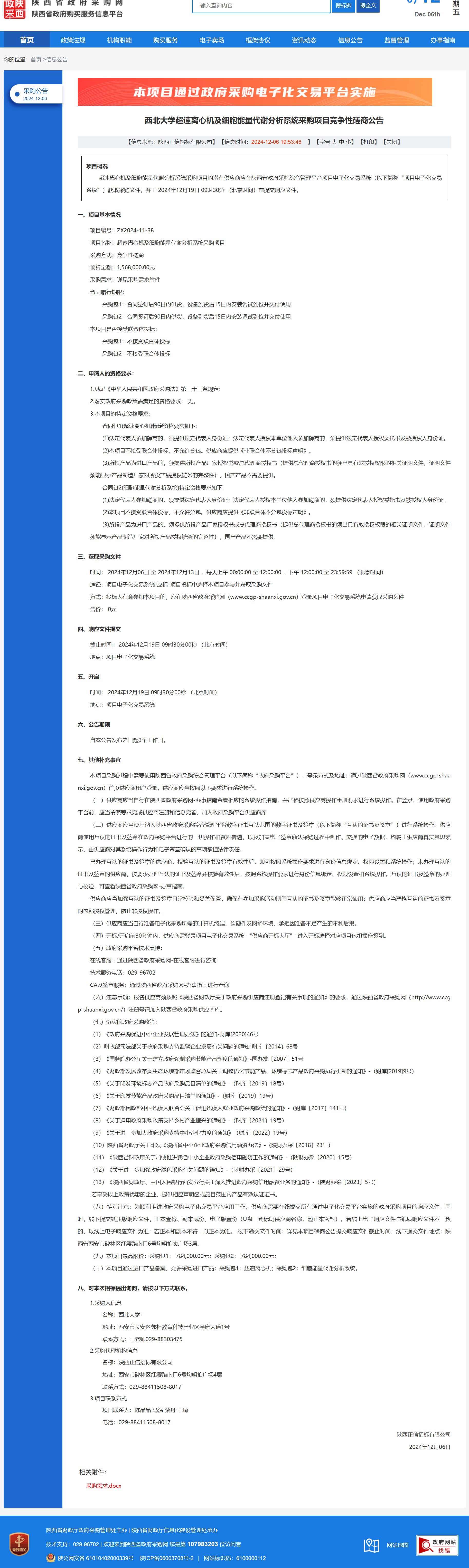 乐动网页版登录入口超速离心机及细胞能量代谢分析系统采购项目竞争性磋商公告 作者:采购与招标办公室 编辑: 时间:2024-12-06 原公告链接:https://www.ccgp-shaanxi.gov.cn/freecms/site/shaanxi/ggxx/info/2024/8a69c5a59218576d01939bb6350f3f92.html?noticeType=001016¬iceId=5be8bcca-b3ca-11ef-8063-08c0eb20c666