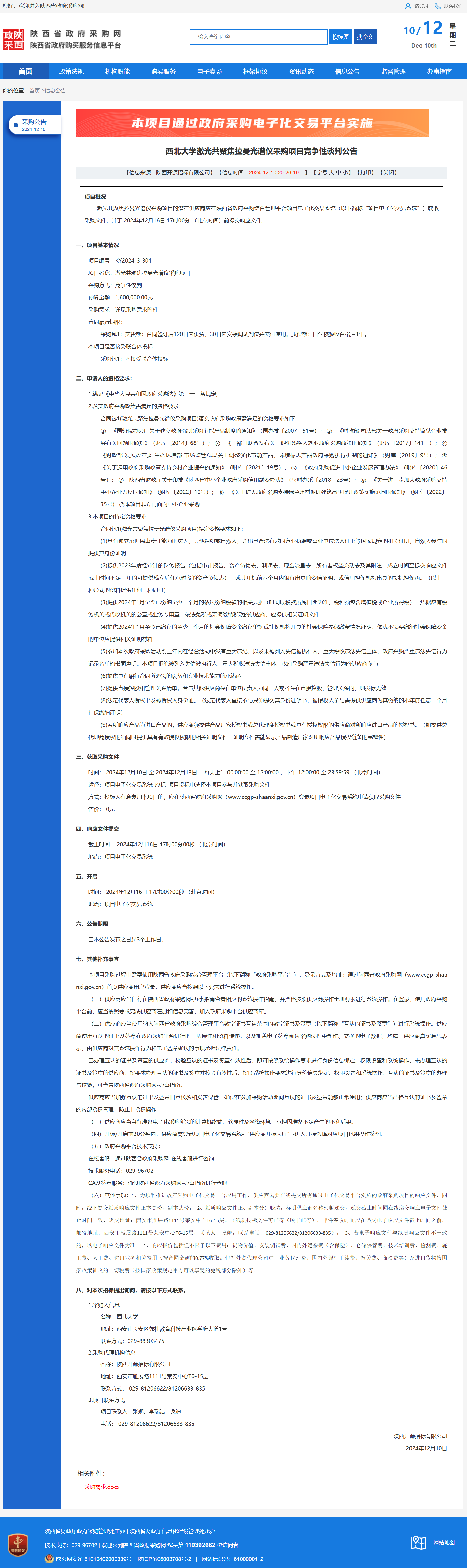 乐动网页版登录入口激光共聚焦拉曼光谱仪采购项目竞争性谈判公告 作者:采购与招标办公室 编辑: 时间:2024-12-10 原公告链接:https://www.ccgp-shaanxi.gov.cn/freecms/site/shaanxi/ggxx/info/2024/8a69c5a59218576d0193b081eb986c20.html?noticeType=001013¬iceId=937b25d9-b6f3-11ef-8063-08c0eb20c666