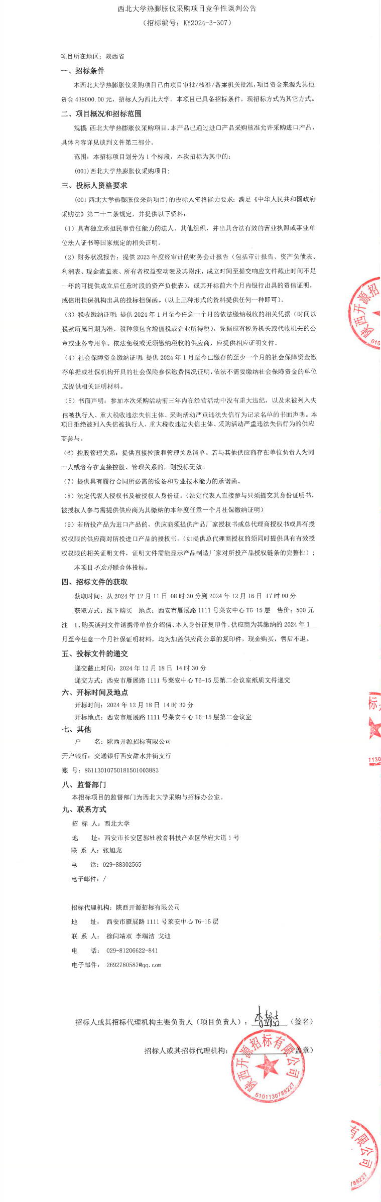 乐动网页版登录入口热膨胀仪采购项目竞争性谈判公告