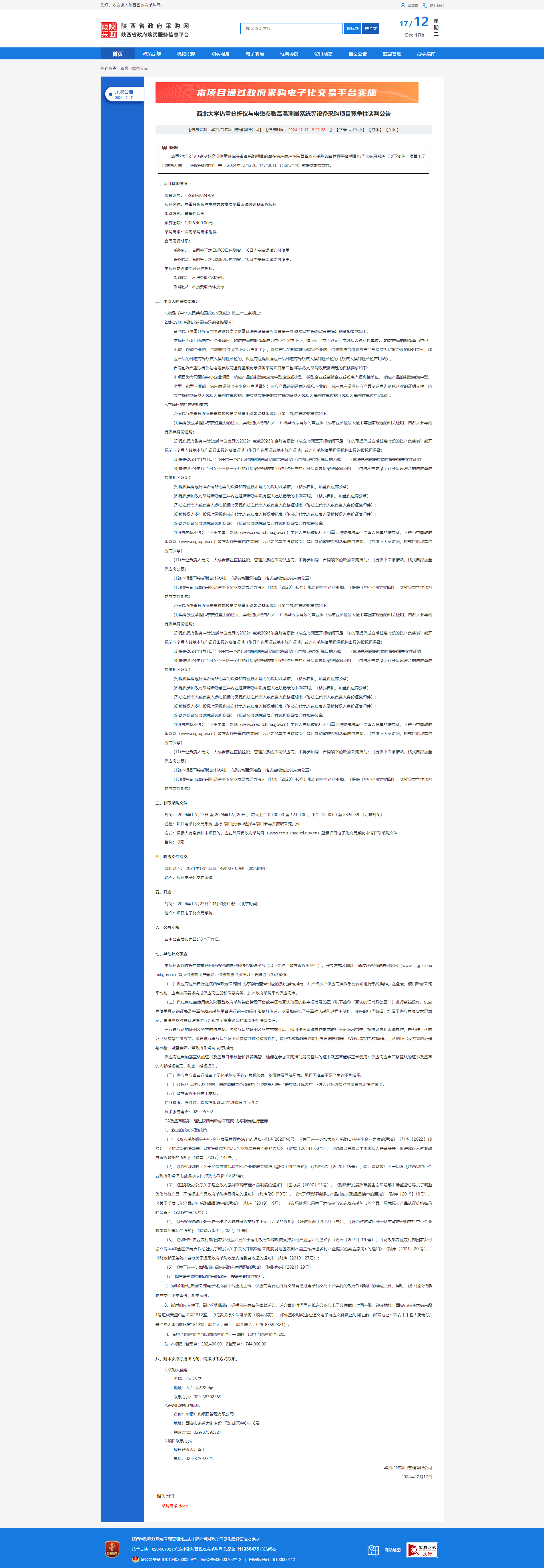 乐动网页版登录入口热重分析仪与电磁参数高温测量系统等设备采购项目竞争性谈判公告